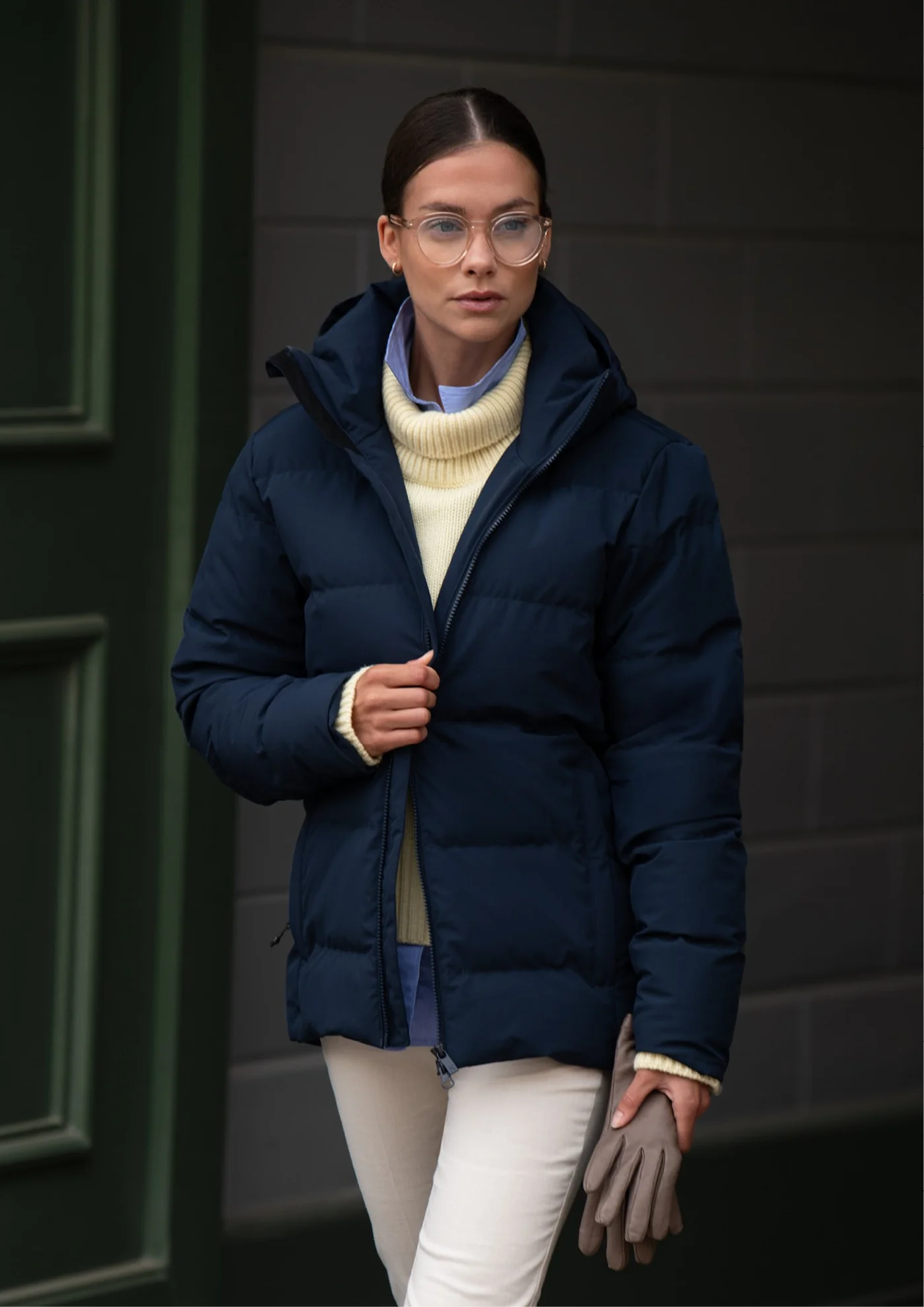 A classic down jacket designed for warmth, style, and protection in unpredictable weather, crafted with recycled fabrics.